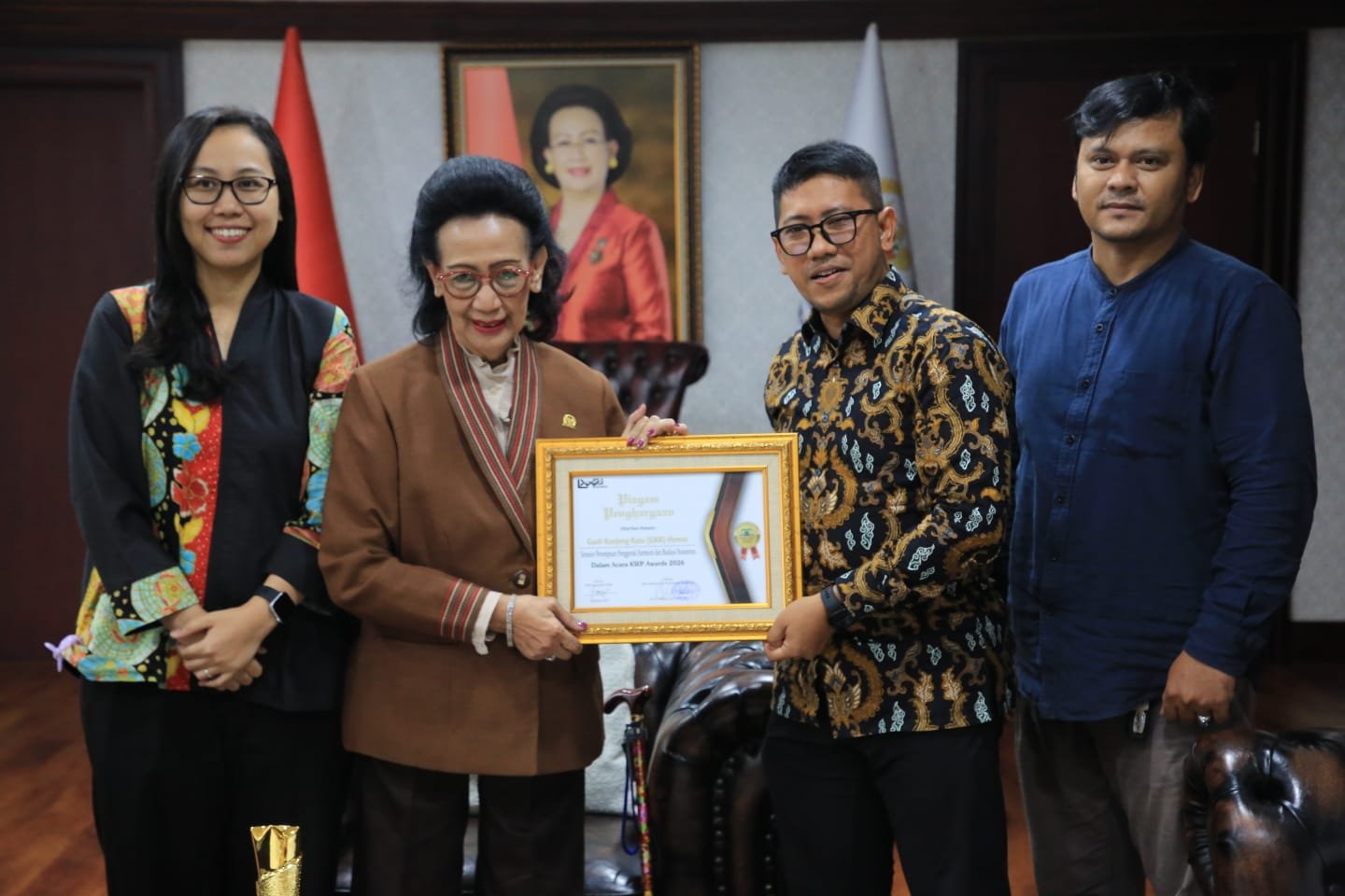 “Saya mengapresiasi pemberian KWP Award 2026 ini. Penghargaan ini menjadi motivasi bagi saya untuk terus mendorong penguatan nilai-nilai budaya dan harmoni dalam kehidupan berbangsa,” kata GKR Hemas usai menerima piagam dan Tropy penghargaan, di ruang kerjanya, di Komplek Parlemen, Senayan, Jakarta, Kamis (23/4/2026).